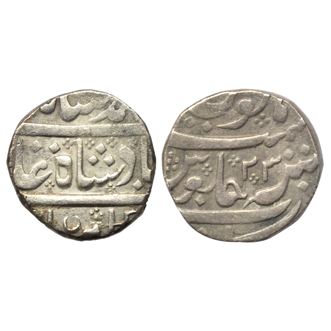 Mughal, Muhammad Shah (AH 1131-1161, 1719–1748 AD), Silver Rupee, 11.29 gms, Arkat Alamparai Mint (off flan), AH 1148, RY 23, KM # 436.7, very fine+, scarce.