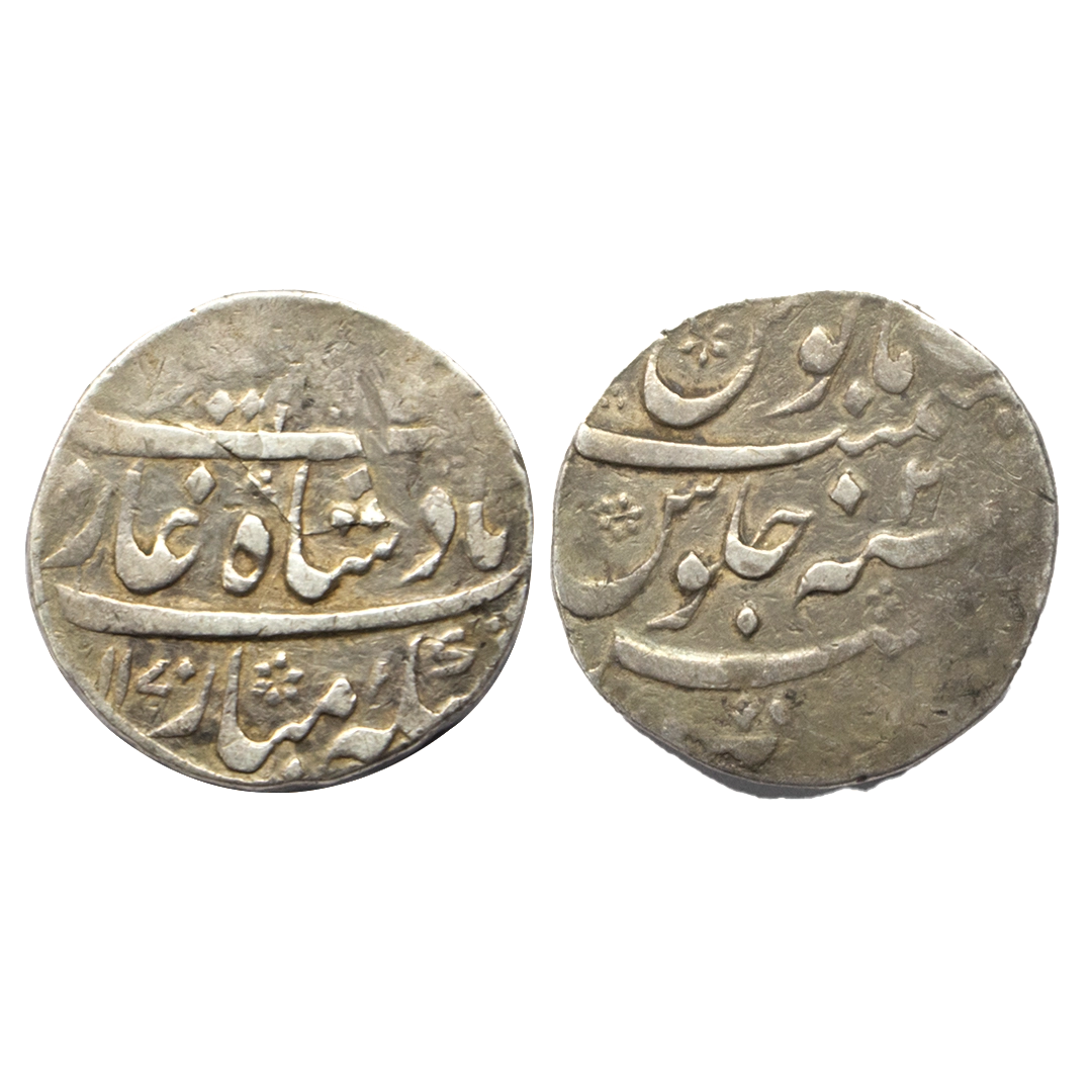 Mughals, Alamgir II (AH 1167-1173 / 1754-1759 AD), Silver Rupee, 11.58Grms, Jahangirnagar (Dacca) Mint, RY Ahd, sun symbol on obv as mint mark. (KM # 460.9).