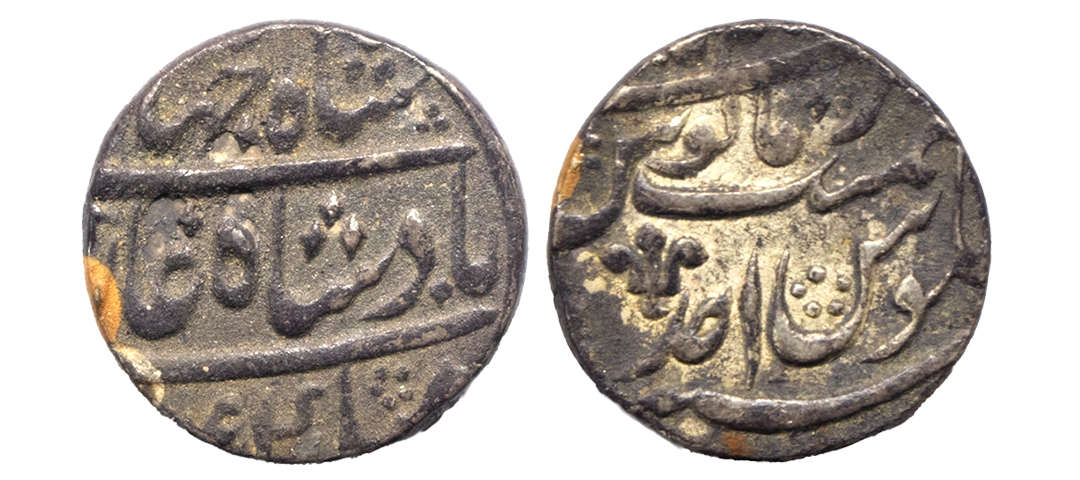 Mughal, Alamgir II (AH 1167-1173, 1755-1761 AD), Silver Rupee, Dar ul-Khilafat Shahjahanabad Mint, AH 1170, RY 4, with the title Abu Al Adil Aziz ud Din, Unlisted in KM, Similar as mohur die KM # 465.1, very fine+, rare.