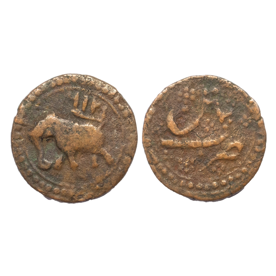 Independent Kingdoms, Mysore, Tipu Sultan (AM 1215-1227, 1787-1799 AD), Copper Double Paisa, 22.85 gms, Patan Mint, AM 1225, obv. An elephant with decorated flag to right, rev. Zarb Dar us-saltanat Patan Mushtari sanah Maludi, KM # 124.6, very fine, very rare.