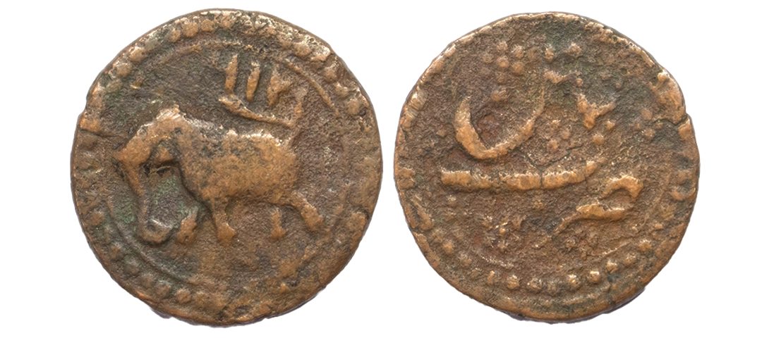 Independent Kingdoms, Mysore, Tipu Sultan (AM 1215-1227, 1787-1799 AD), Copper Paisa, 11.20 gms, Kalikut Mint, AM 1201, Obv: elephant walking to right with above am year within a dotted circle, Rev: Persian legend "zarb Kalikut", KM # 73, very fine, rare.
