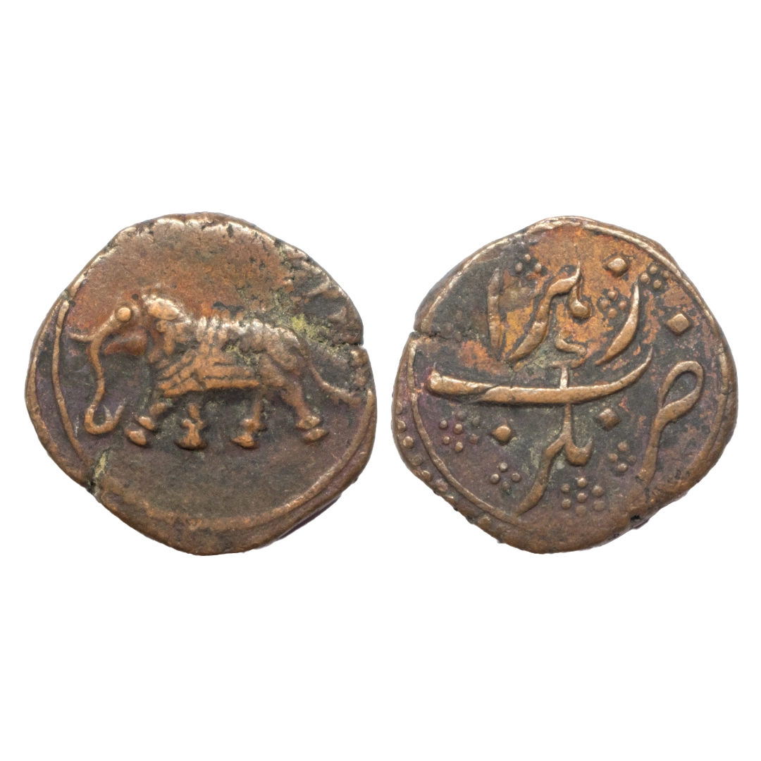 Independent Kingdoms, Mysore, Tipu Sultan (AM 1215-1227, 1787-1799 AD), Copper ½ Paisa, 4.35 gms, Patan Mint, AH 1216, Obv. Elephant to the left, Rev. decorated with rosettes, KM # 121.1, very fine, scarce.