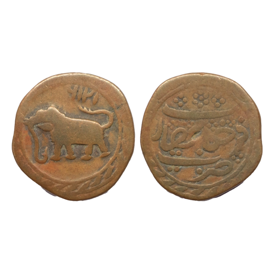 Independent Kingdoms, Mysore, Tipu Sultan (AM 1215-1227, 1787-1799 AD), Copper ½ Paisa, 4.35 gms, Patan Mint, AH 1216, Obv. Elephant to the left, Rev. decorated with rosettes, KM # 121.1, very fine, scarce.