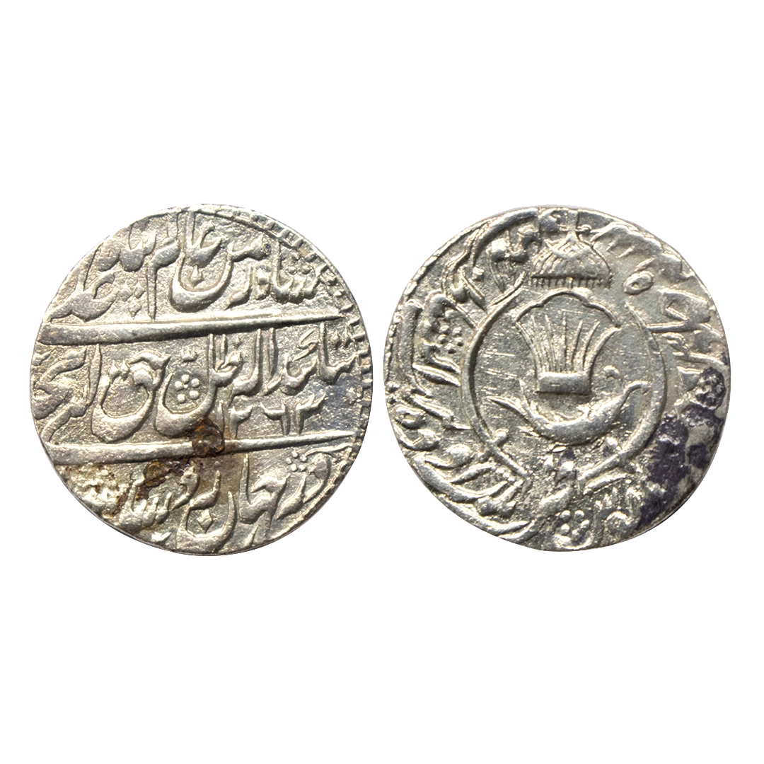 Indian Princely States, Awadh State, Muhammad Ali Shah (AH 1253-1258, 1837-1842 AD), Silver Rupee, Mulk Awadh Bait-us-Sultanat Lakhnau Mint, AH 1256, RY 3, KM # 316.3, Graded as MS 61 by NGC, very rare.