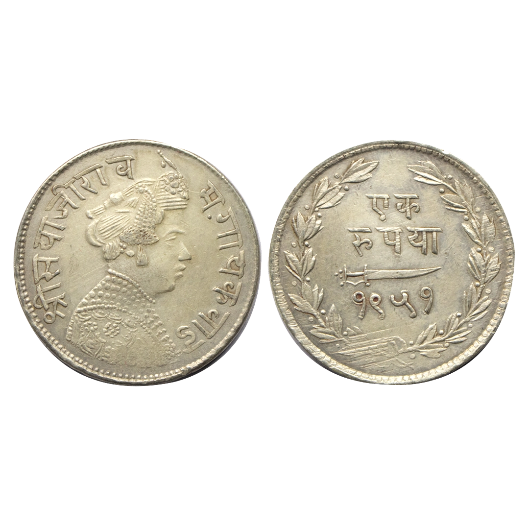 Indian Princely States, Baroda State, Sayaji Rao III (AH 1292-1357 / VS 1932-1995 / 1875-1938 AD), Copper Paisa, 7.76 gms, Baroda Mint, VS 1947, AD 1880, Obv. inscription, Rev. Nagari "Sa Ga" and scimitar, KM # Y24, very fine, rare.