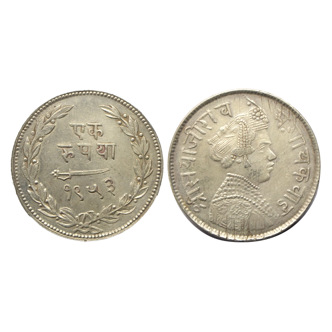 Indian Princely States, Baroda State, Sayaji Rao III (AH 1292-1357 / VS 1932-1995 / 1875-1938 AD), Copper Paisa, 7.76 gms, Baroda Mint, VS 1947, AD 1880, Obv. inscription, Rev. Nagari "Sa Ga" and scimitar, KM # Y24, very fine, rare.
