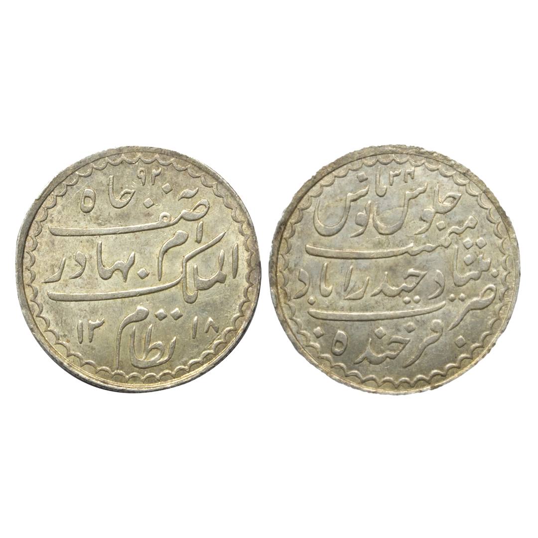 Indian Princely States, Hyderabad Feudatories, INO Alamgir II (AH 1167-1173, 1755-1761 AD), Koilkonda Mint, Silver Rupee, 11.01 gms, Obv: Persian legend “sikka zad dar jahan ba fazle elahi, shah alam panah (Alamgir sani)”, Rev: Persian legend “maimanat julus” & “zarb Koilkonda” visible at the bottom, Unlisted in KM, very fine, extremely rare.