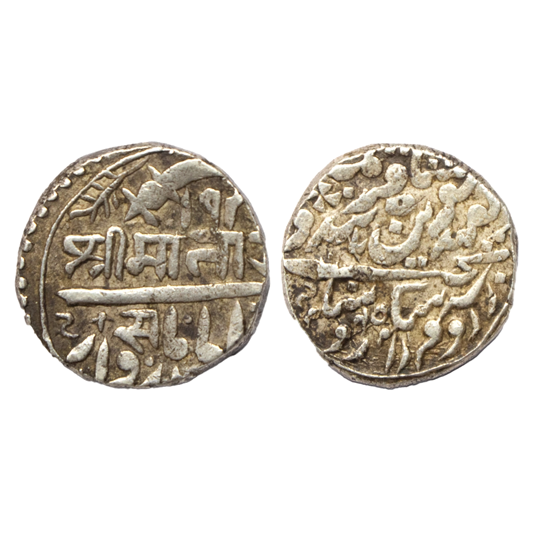 Indian Princely States, Jhalawar State, Madan Singh (AH 1253-1261, 1837-1845 AD), Silver Rupee, 11.24 gms, Jhalawar Mint, RY 15, Madan Shahi series, KM # C 28, very fine+, scarce.