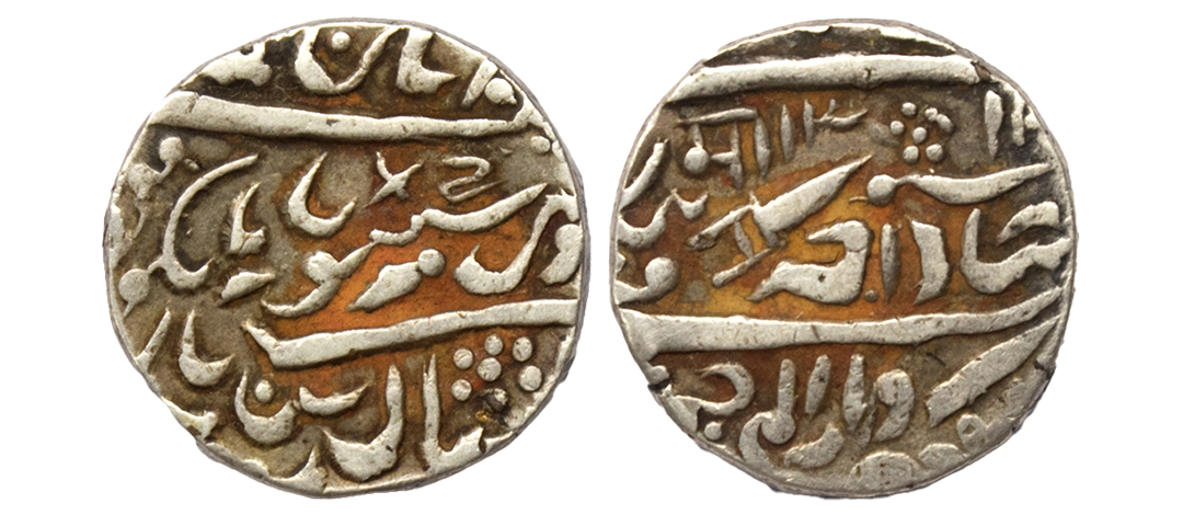 Indian Princely States, Jodhpur State, Takht Singh (AH 1290-1313, 1873-1895 AD), Silver Rupee, 11.19 gms,with a dagger and ‘MA’ daroga mark on reverse, Lingen # J. 7.2.06, very fine, scarce.