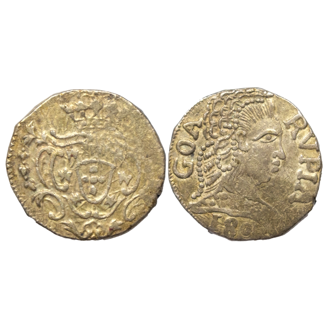 Indo-Portuguese, Goa, Maria I (c. 1777-1816 AD), Silver Rupia, 10.92Grms, AD 180X, OBV: Diademed head to right with GOA on left