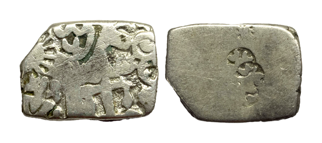 Ancient, Mauryan, Magadha Imperial (C. 321-150 BC), Silver Karshapana, 2.94 gms, Obv. Multiple marks including sun 3-arched hill 6-spoked wheel and geometric symbols, Rev. banker’s mark, Gupta & Hardaker, Series # VI b, very fine, scarce.