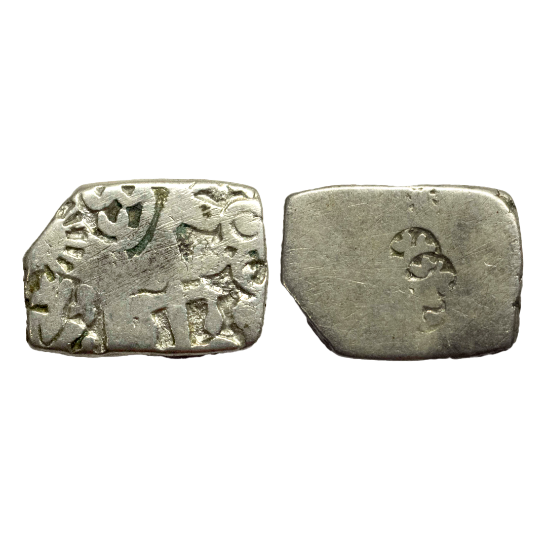 Ancient, Mauryan, Magadha Imperial (C. 321-150 BC), Silver Karshapana, 2.94 gms, Obv. Multiple marks including sun 3-arched hill 6-spoked wheel and geometric symbols, Rev. banker’s mark, Gupta & Hardaker, Series # VI b, very fine, scarce.