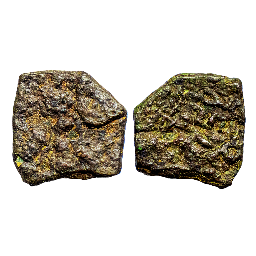Ancient, Ujjain (2nd-1st Century BC), Copper Unit, 7.10 gms, Obverse: Standing Mahakaal, holding a sun standard, Tree-in-railing at left, Reverse: Ujjain symbol, very fine, very scarce.