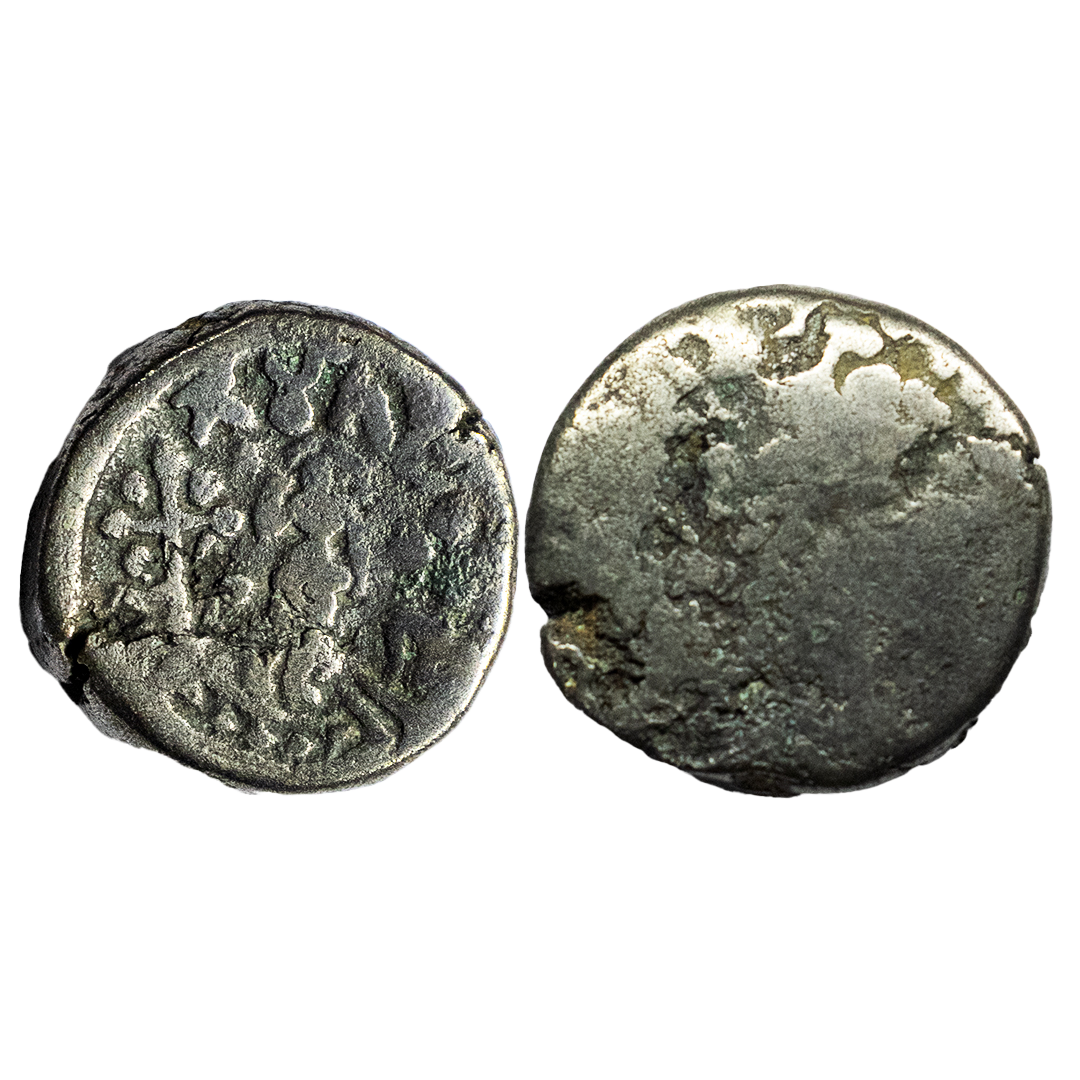 Ancient, Post-Mauryan (Deccan). Maharathis of Vidarbha, Talathati, (150-200 CE). Copper Unit, 3.73 gms, Brahmi legends MAHARATHISA around large tree in railing, traces of legends on reverse, Apparently unpublished, Struck on a somewhat short flan, very fine+, very rare.
