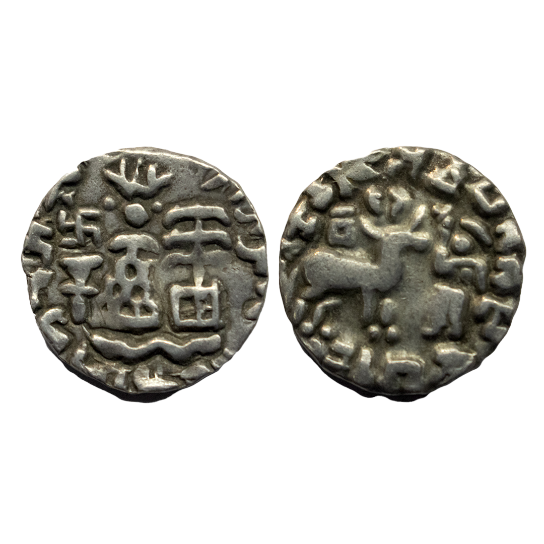 Ancient, Mitras of Kaushambi, Jethamitra ( 200 BC), Copper Unit, 6.05 gms, Obv: tree in railing, Rev: diety at centre brahmi legend ‘(Je)thamitra’ around, very fine, exact type unlisted, very rare.