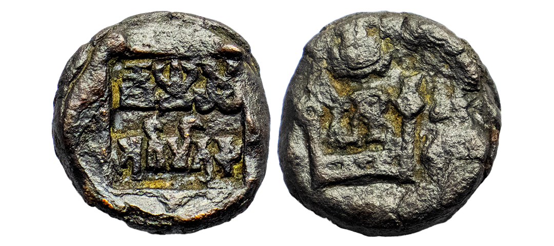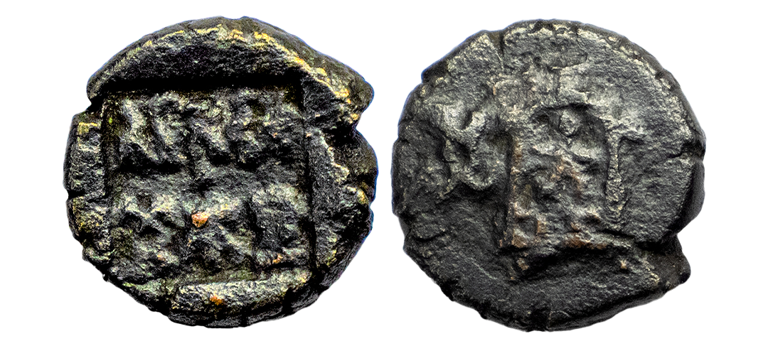 Ancient, Panchala (Pre Kushana), Phalgunimitra (110-120 AD), Copper Unit, 14.69 gms, Obverse: Deity standing on a lotus, Shrivatsa at left, Reverse: Panchala symbols on top row, Brahmi legend ‘Pagunimitrasa’ below, very fine, very rare in this grade