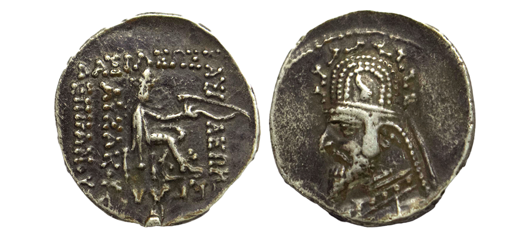 Ancient World, Parthian Empire, Phraates III (c.70/69-57/58 AD), Silver Drachm, 2.97 gms, Susa Mint, Obv: Diademed bust left, wearing tiara, Rev: archer seated on throne offering a bow, with mintmark below; Greek inscription BASILEWS MEGALOU ARS-AKOU EUERGETU EPIFANOUS FILELLHN read from outside, Sellwood # 39.14, very fine, very rare ruler.