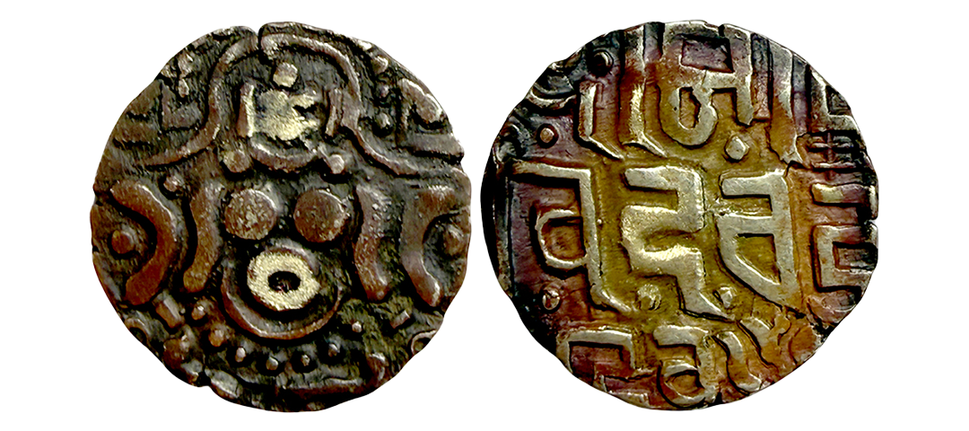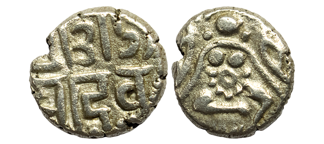 Paramaras of Dhara, gold 4½ masha coin of Udayaditya (1070-1093 AD), not listed in Deyell. Obv: Goddess Lakshmi seated facing front. Rev: Nagari legend Srimadu / daya De/vah, in three lines. Very fine+, Rare.