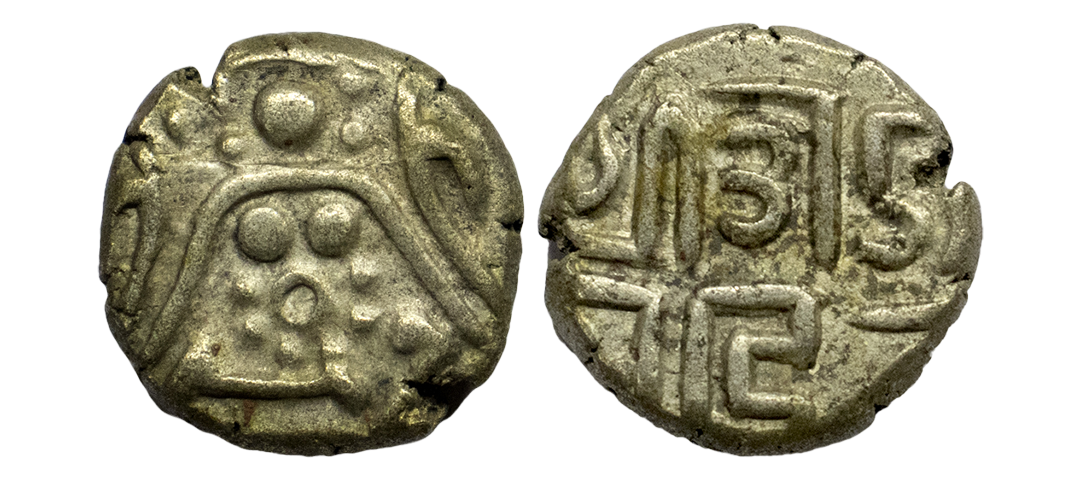 Chowhanas of Shakambri (Ajmer) Ajaya Deva alias Jaichand ( c.1110-1120 AD ), 4-1/2 Masha ( 1 Masha = 8 Ratti ), Silver Unit, 4.37 gms, Obv. Goddess Lakshmi seated front facing, Rev. Nagari legend in two lines Sri Aja / ya / deva, The Chowhanas dynasty, a branch of the Chowhanas clan (“clan” is derived from the Gaelic clann meaning “children”, “offspring”, “progeny” or “descendants”), distinguished itself in successfully fighting the Islamic invasions from Ghazna ( a city in central Afghanistan ), Deyell # 179, very fine, very scarce.