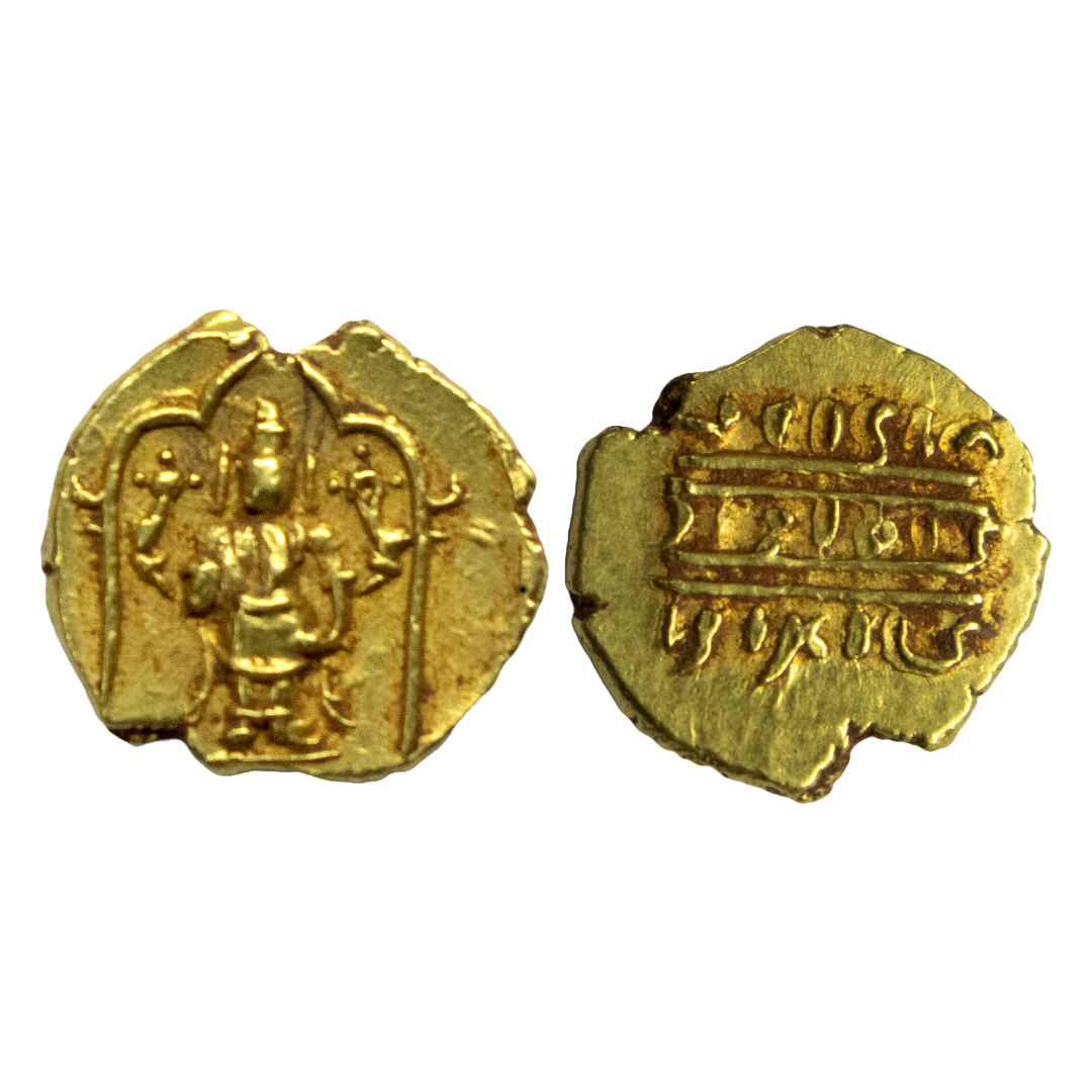 Hindu Medieval, Vijayanagara kingdom, Achyutaraya (1529-42 AD), Gold Pagoda, 3.40 gms, Obverse: Mythical twin headed bird Gandabherunda holding four elephants, two in its beaks and two in its claws, Reverse: Plain, Achyutaraya was the younger brother of Krishnadeva Raya and succeeded him in in 1529 AD. However in 1540, Aliya Rama Raya imprisoned Achyuta Raya in a coup and became the de-facto ruler, Mitch. K&A # 671/Dr. M. Girijapathi # 220, very fine, rare.