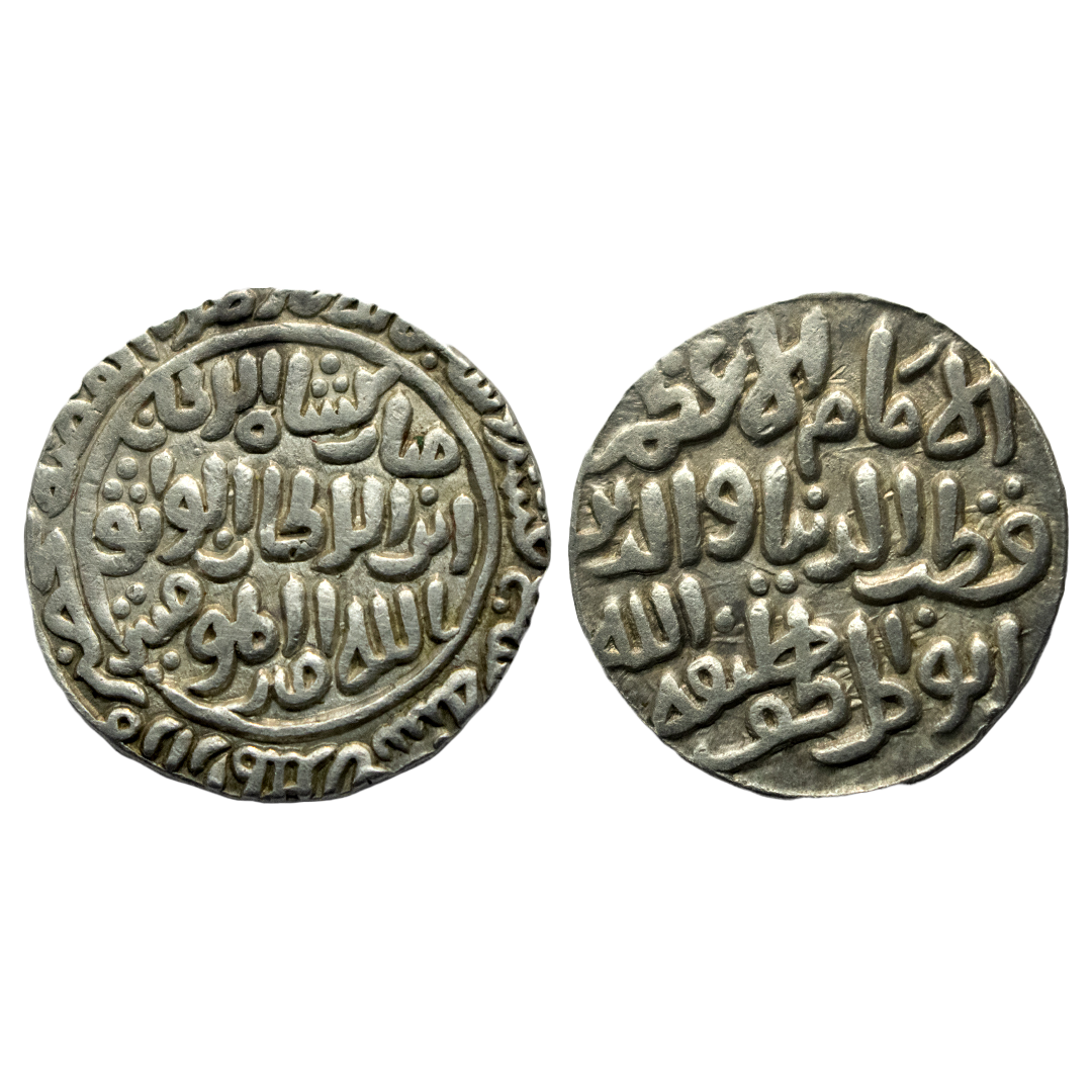 Delhi Sultanate, Muhammad bin Tughluq Shah (AH 725-752 / 1325-1351 AD), SilverTanka, 11.08Grms, Delhi Mint, coin struck in the name of Abbasid caliphs, Fi zaman al imam al mustafi billah amir legend on obv., both sides legend within sixfoil. (G&G # D430). Extremely Fine. Extremely Rare.