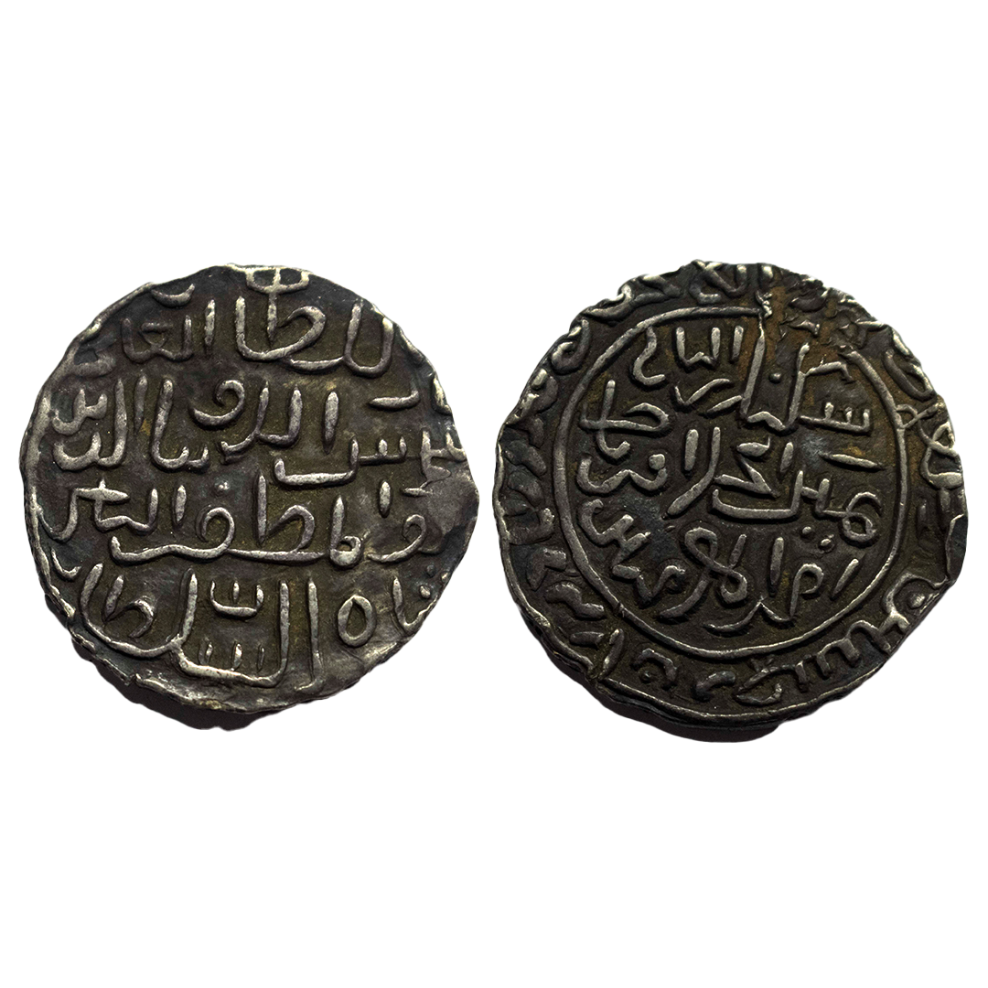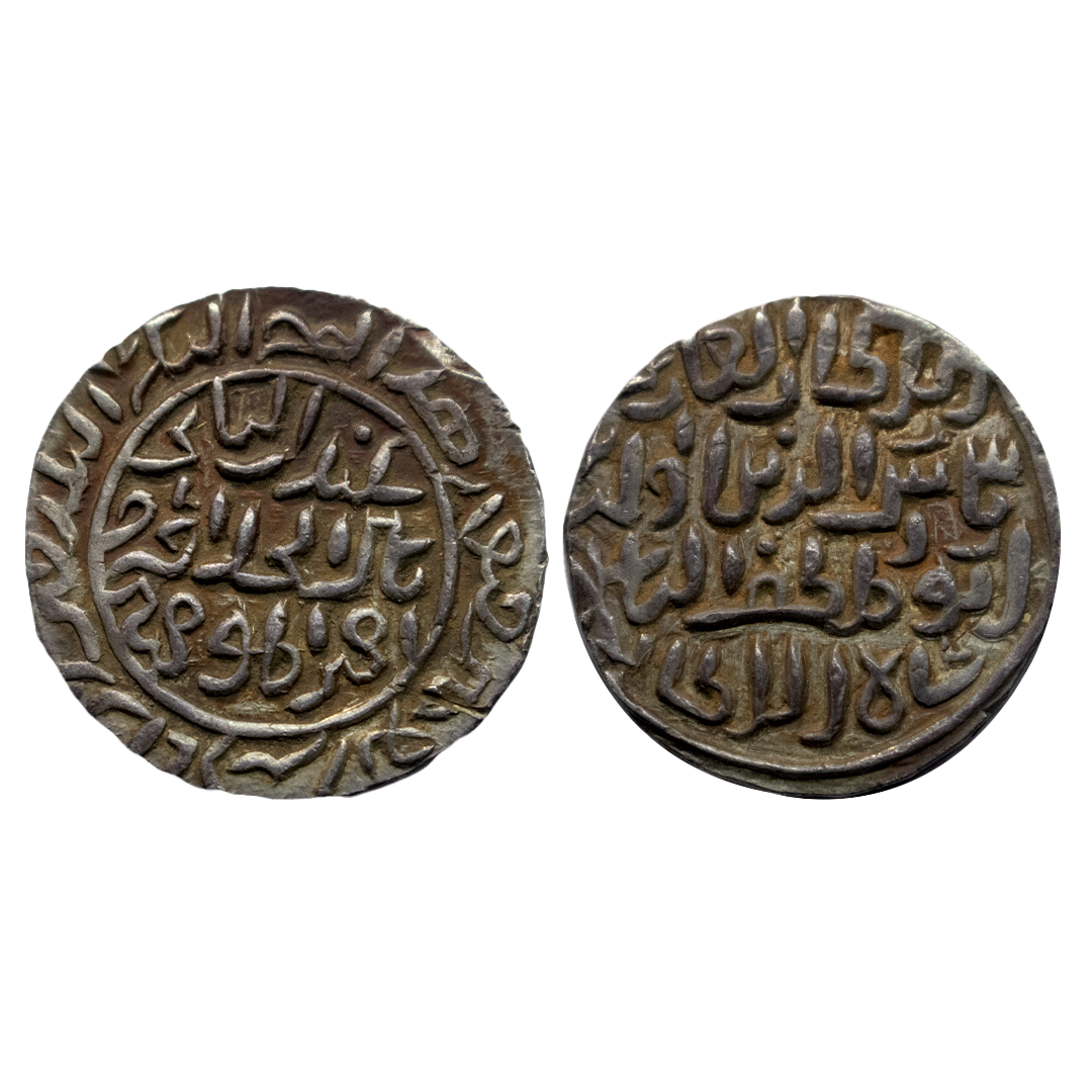 Bengal sultan, Coin Struck in the name of Nasir Al-Din Mahmud sultan of delhi by Lakhnauti Mint, (AH 644-664/AD 1246-1266), Silver Tanka, 10.7g, 658 AH (Date Unlisted in G&G), obv: caliph al-Musta’sim but the word shah is omitted from the bottom line, G&G B71, NW 225C, Extremely Fine+ with complete mint and date in a Beautiful Condition and Broad Flan, Extremely Rare.