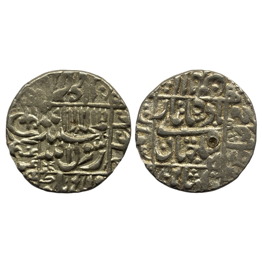 Shah Jahan (AH 1037-1068 / 1628-1658 AD), Silver ½ Rupee, 5.29Grms, Qandahar Mint, AH 1042, both sides legend within square area. Unlisted in KM. Rare.