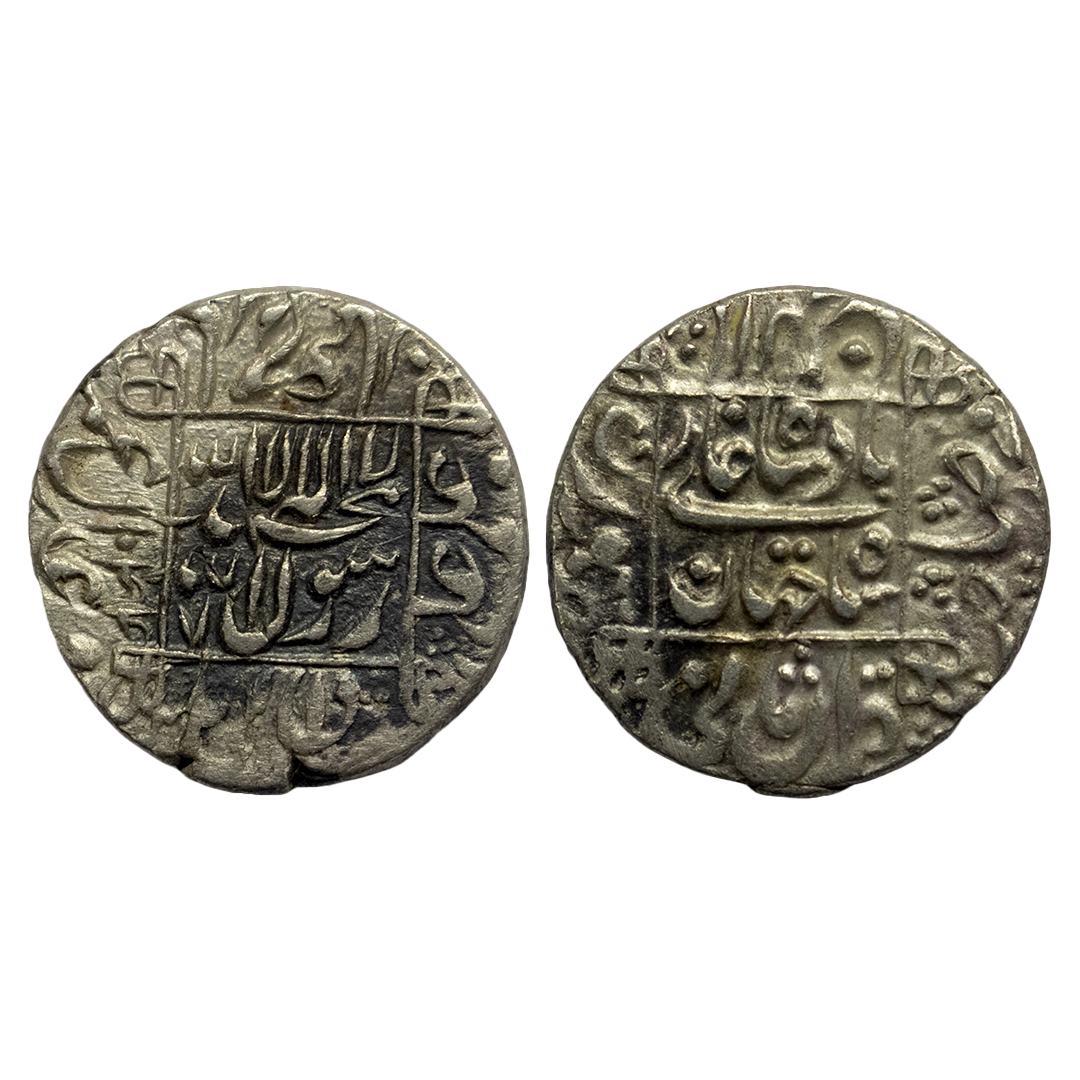Shah Jahan (AH 1037-1068 / 1628-1658 AD), Silver ½ Rupee, 5.29Grms, Qandahar Mint, AH 1042, both sides legend within square area. Unlisted in KM. Rare.