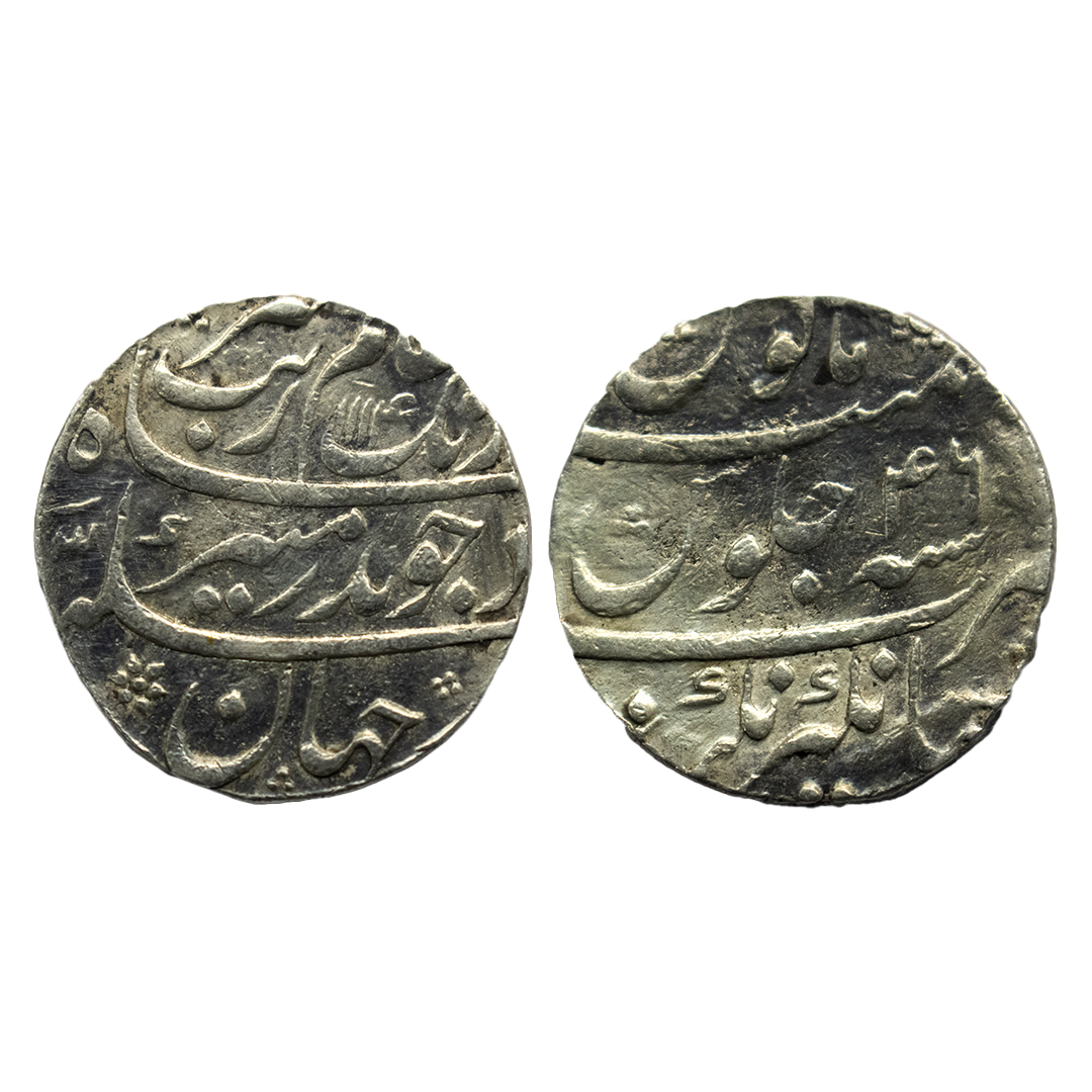 Mughals, Auragzeb (AH 1068-1118 / 1658-1707 AD), Silver Rupee, 11.540Grms, Ahmadabad Mint, AH 1118, RY 51, Last Ruling Year for Aurangzeb, Badr-i-munir type. (KM # 300.2). Very Fine+.