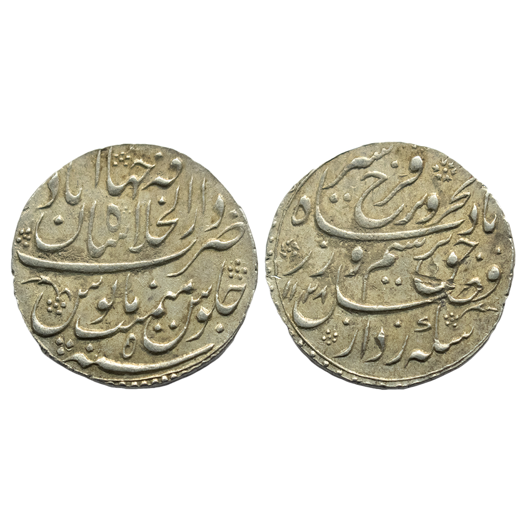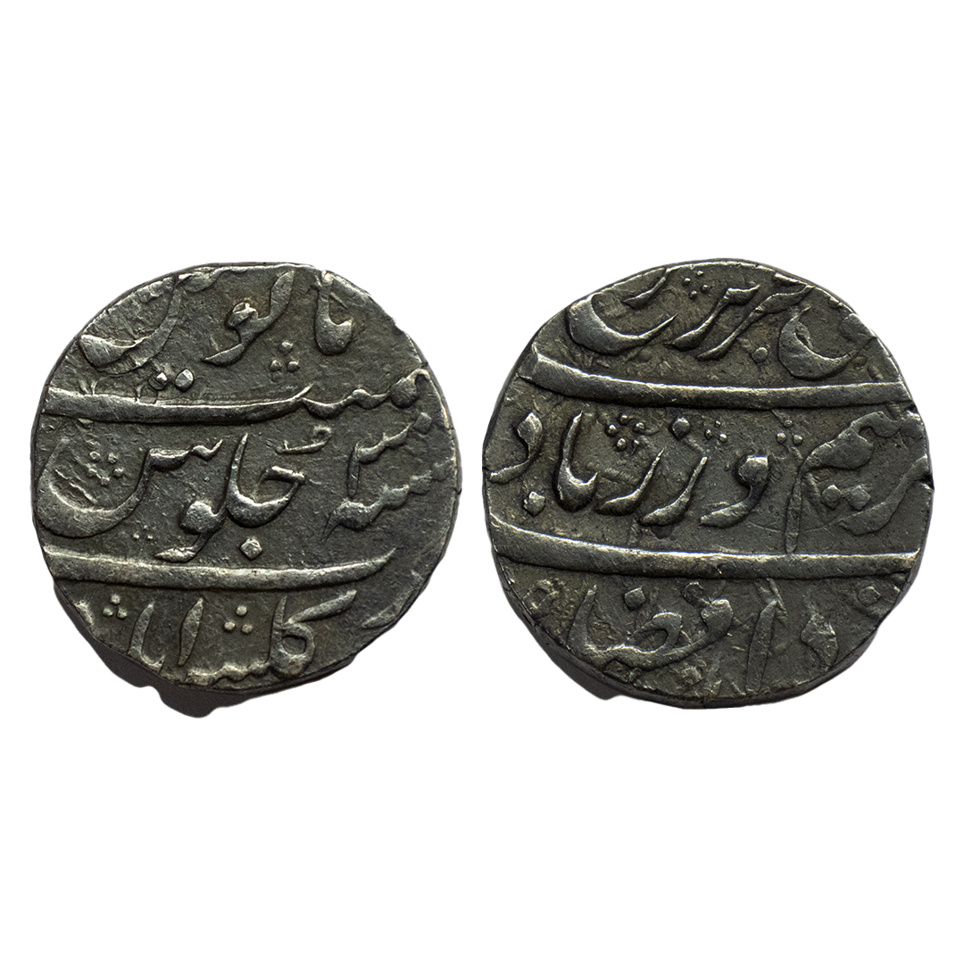 Mughals, Jahandar Shah (AH 1124 / 1712-1713 AD), Silver Rupee, 11.53Grms, Fathabad Dharur Mint, AH 1124, RY Ahd, Abu'l Fath' couplet, almost mint name in two lines on rev. (KM # 363.11). Very Fine. Very Rare.