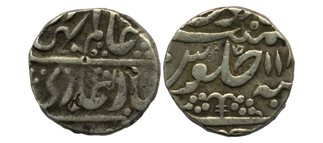 Cooch Behar, Upendra Narayan ( SE 1637-1686/1715-1764 AD), Silver ½ Tanka, 4.62 gms, Obv: nagari legend in four lines part of sri sri/siva charana/kamala madhu/karasya, Rev: nagari legend part of sri srima/upendra nara/yanasya sake, S.K.Bose # H-1.3, very fine, scarce.
