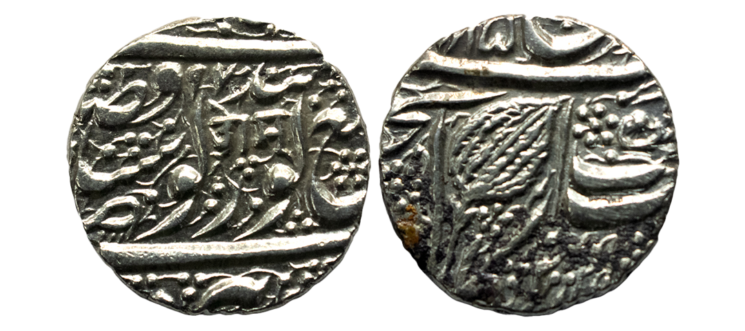Independent Kingdom, Maratha Confederacy, Ravishnagar Sagar Mint, Silver Rupee, 10.99Grms, in the name of Shah Alam II, RY 55, Flag and trident on obv. (M&W # T3a). Extremely Fine.