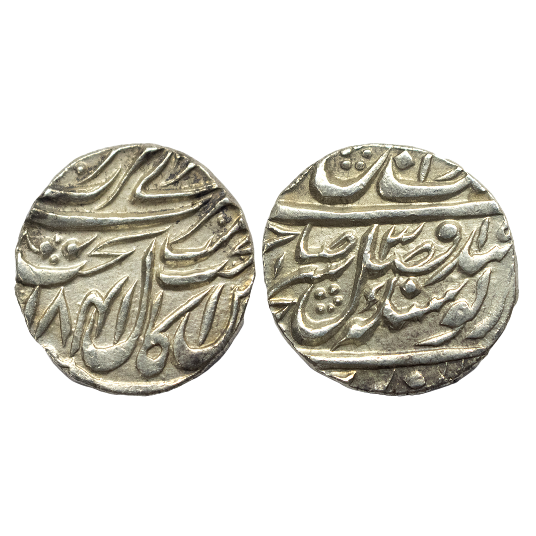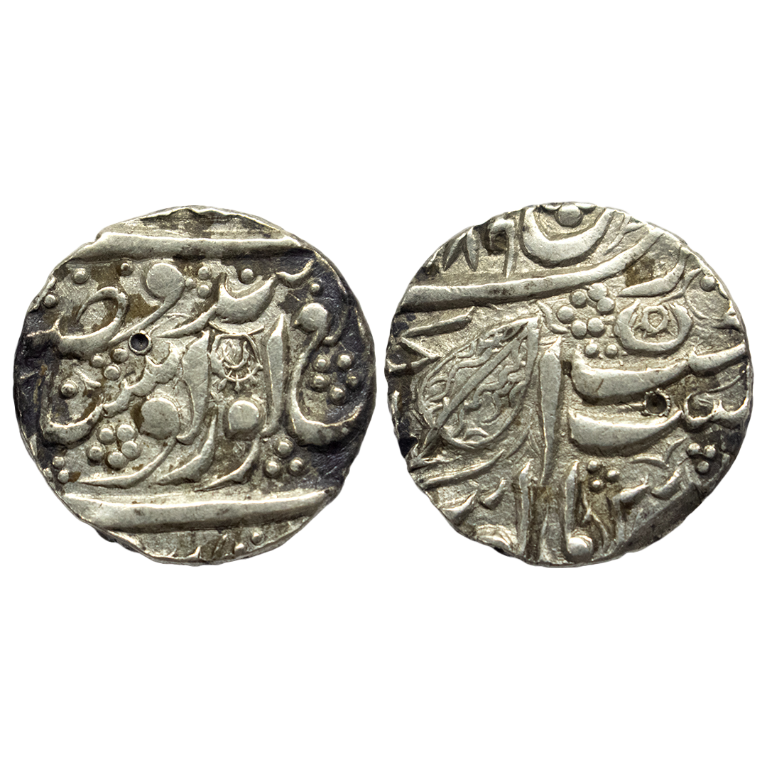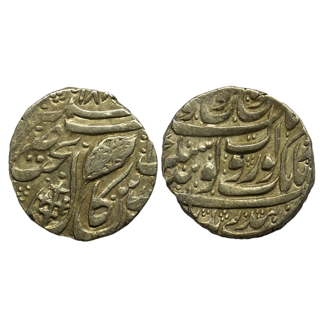 Sikh Empire, 2nd sikh occupation of multan, silver rupee, 11.09g, Multan mint, VS 187. Obv: Nanakshahi couplet. Rev: Leaf symbol, date and mint name, Herrli type, 11.03.04.Very fine+, Rare.