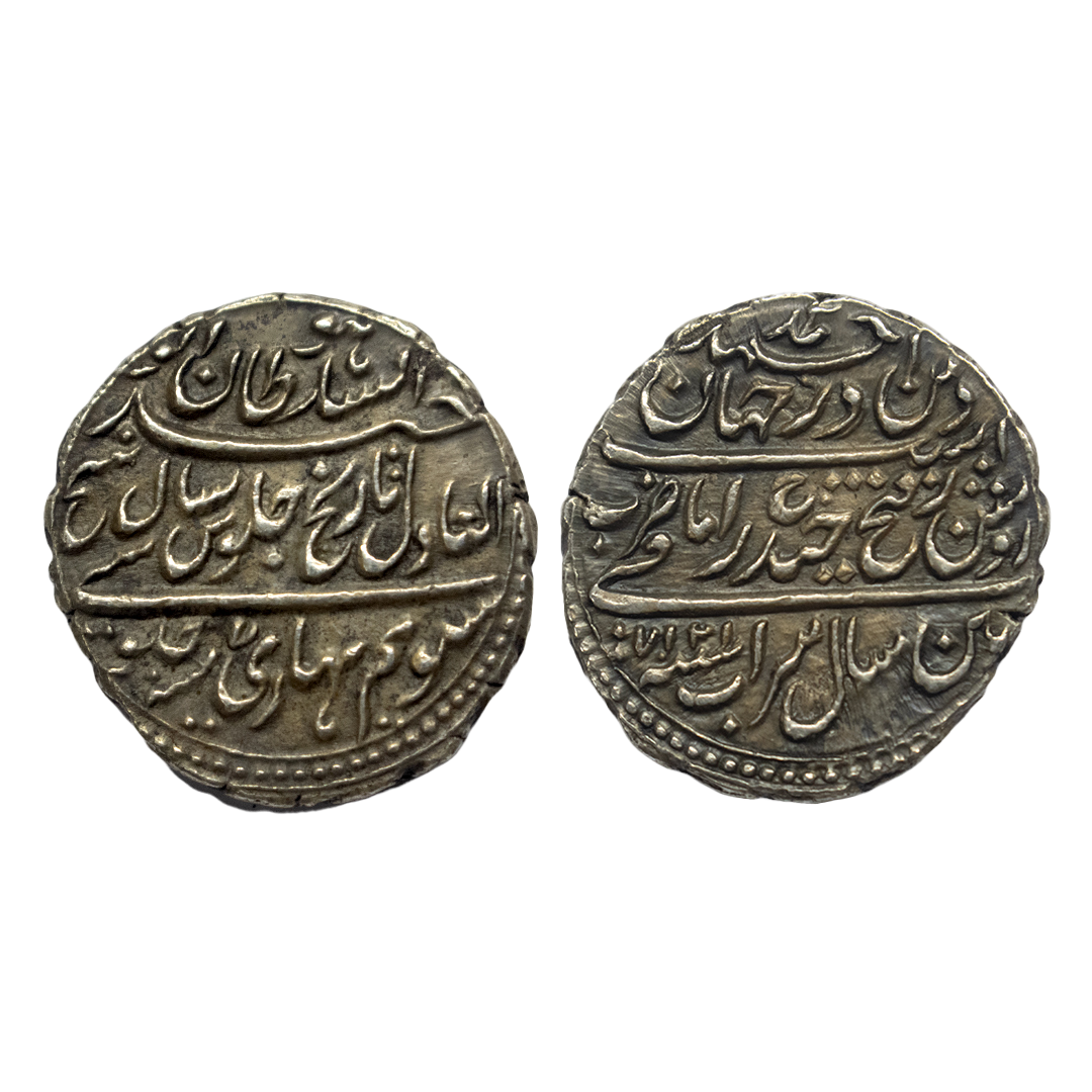 Sikh Empire, silver rupee, Amritsar mint, Nanak Shahi couplet, VS 1877, persian Noon symbol below the bind of Gobind on obverse, nice dotted arragement, G. Singh 01.39.01, 11.08g. MS61 by NGC Very scarce