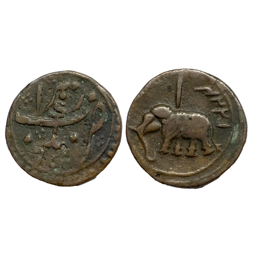 Sikh Empire, Maharaja Duleep Singh, Copper Paisa, Kashmir mint, Obverse: Persian “Zarb Srinagar” (Struck in Srinagar). Three petal Flower. Reverse: Persian “Gadadharji” (Lord Krishna) or “Maahadeva Sahai”, Ref Saran & Dalwinder Singh - KS60, Valentine 153, 156, 158, 160 , Very Fine+, Very Rrae.