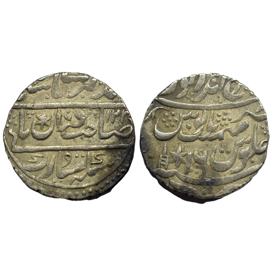 Bharatpur, Randhir Singh (AH 1220-1239; 1805-1823AD), Silver Rupee, 11.16Grms, Brajinderpur Mint, in the name of Muhammad Akbar II, RY16, Star and dagger symbol on rev as a mint mark. (KM # 106a). Very Fine.