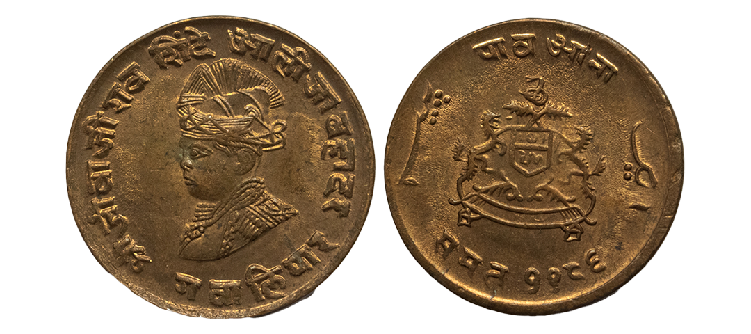 Indian Princely States, Gwalior State, Baija Bai (AH 1243-1249, 1827-1833 AD), INO Muhammad Akbar II (AH 1221-1253, 1806-1837 AD), Silver Rupee, 10.95 gms, Lashkar Mint, Frozen RY 23, “Shri” in Nagari & five flowered symbol, KM # 65, very fine+, very scarce.