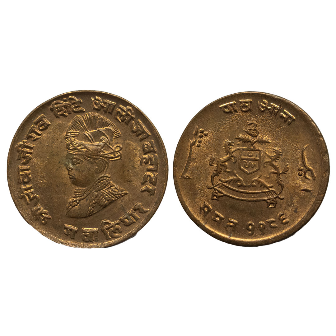 Indian Princely States, Gwalior State, Baija Bai (AH 1243-1249, 1827-1833 AD), INO Muhammad Akbar II (AH 1221-1253, 1806-1837 AD), Silver Rupee, 10.95 gms, Lashkar Mint, Frozen RY 23, “Shri” in Nagari & five flowered symbol, KM # 65, very fine+, very scarce.