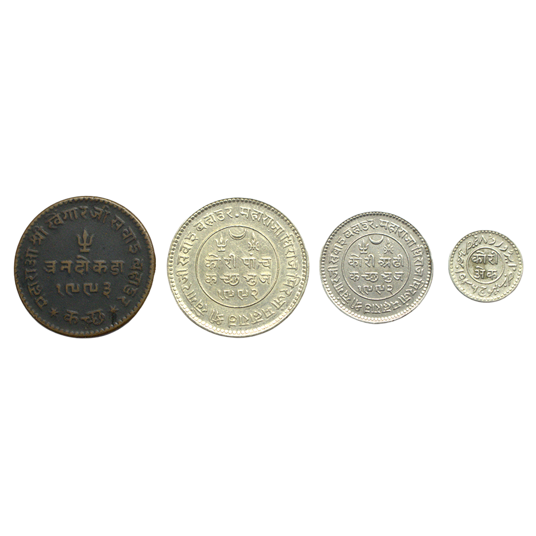 Kutch, Khengarji III (VS 1932-1998 / 1875-1942 AD), Silver 5, 2 ½ , 1 Kori and Copper Dokdo (4), in the name of Edward VIII, VS 1992, AD 1936, Bhuj Mint. Very Fine to Extremely Fine+.