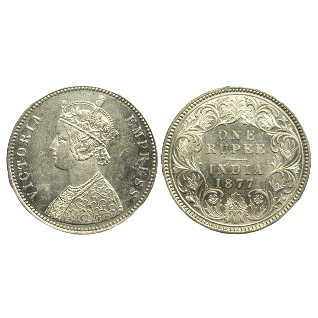 British India. Victoria Empress, Silver Rupee, 1877, Calcutta Mint, Uncirculated, Scarce.