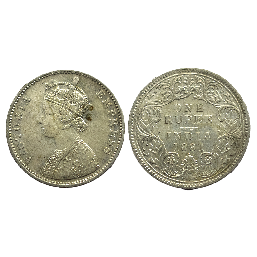 British India, Victoria Empress (1862-1901 AD), Silver 1/2 Rupee, 5.76 gms, 1880 AD, Calcutta Mint, Prid # 264, very fine+, extremely rare.