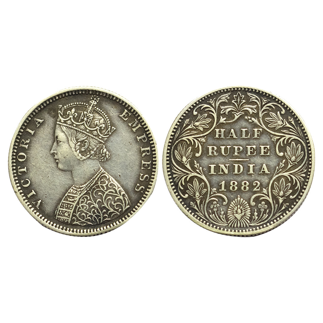 British India, Victoria Empress (1862-1901 AD), Silver 1/2 Rupee, 5.76 gms, 1880 AD, Calcutta Mint, Prid # 264, very fine+, extremely rare.