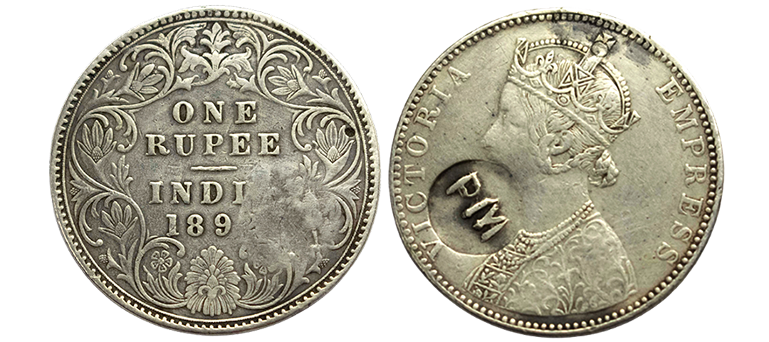 British India/Portuguese Mozambique, Victoria Empress, 1892, Silver Rupee, 11.44 gms, Counter Marked 'PM', Bombay Mint, about extremely fine, very rare. Note: 'PM' initials counterstruck on the face of Victoria stands for Portuguese Mozambique.