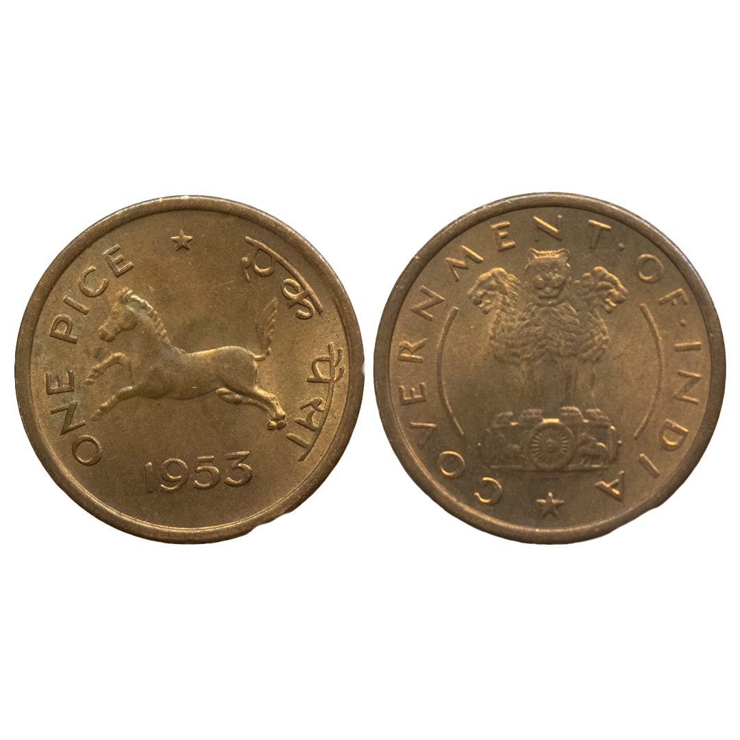 Republic India, 1953, One Pice, 2.99 gms, Calcutta Mint, Uncirculated.