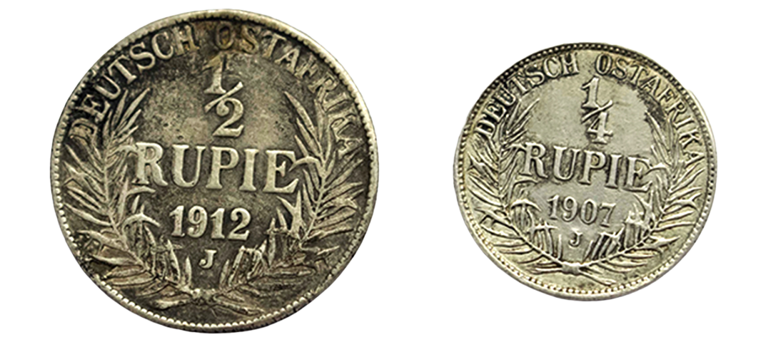 German East Africa, Wilhelm II (1888-1918 AD), Set of 2, ½ Rupie & ¼ Rupie, 1912 & 1907, Hamburg Mint, Obv. Helmeted half-length figure in uniform facing left, Lettering: GUILELMUS II IMPERATOR, Rev. Value within palm branches, Lettering: DEUTSCH OSTAFRIKA ½ RUPIE Date J, KM # 9 & 8, very fine+, very scarce as as et.