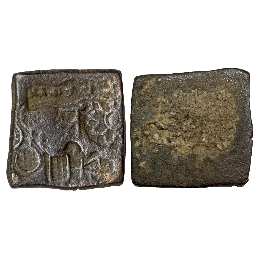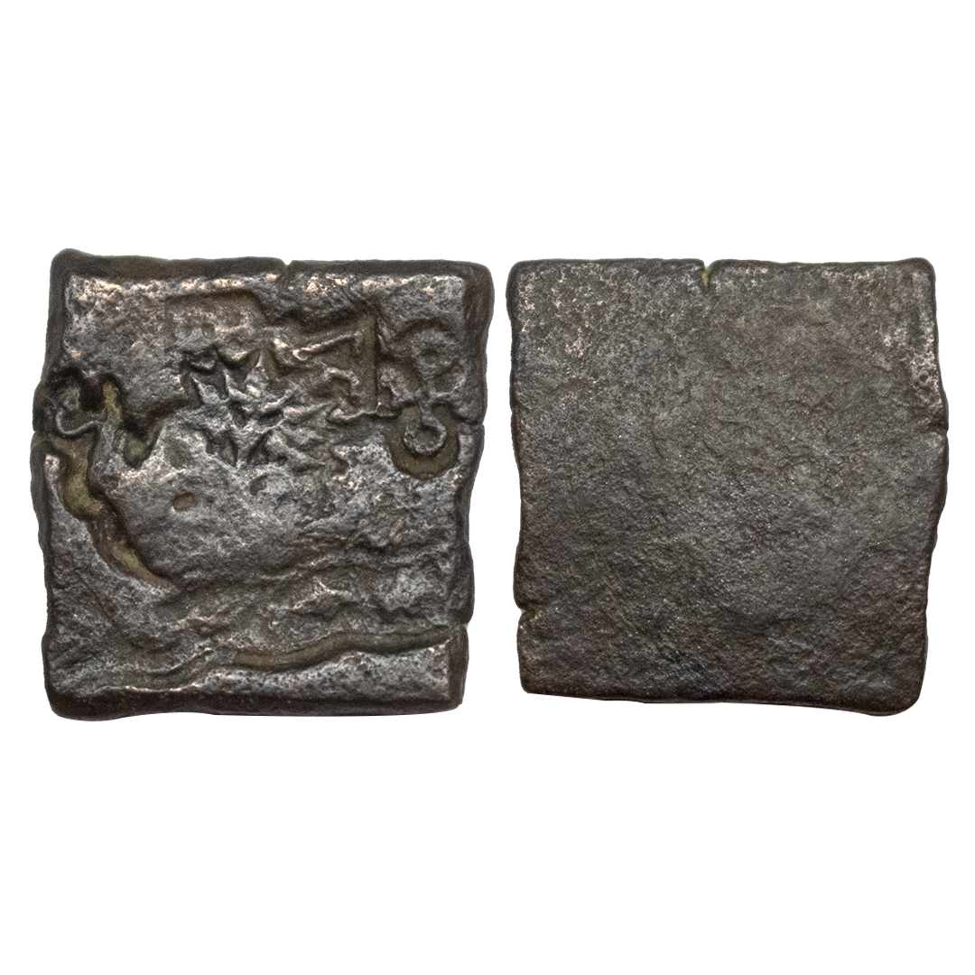 Vidarbha (Paoni) Region, Cast Copper, 2.00Grms, OBV: Three arched hill above crescent and Tree-in-railing both symbol in vertical position, Uniface. (Pieper #