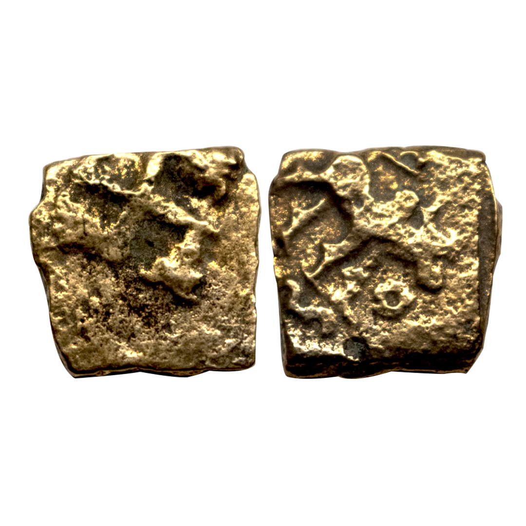 Post-Mauryan, Central India, Punch Marked, Copper Karshapana, 5.89Grms, OBV: Tree-in-railing, like srivatsa and traces of other symbols, REV: Four orbed ujjaini, like srivatsa and traces of other symbol.