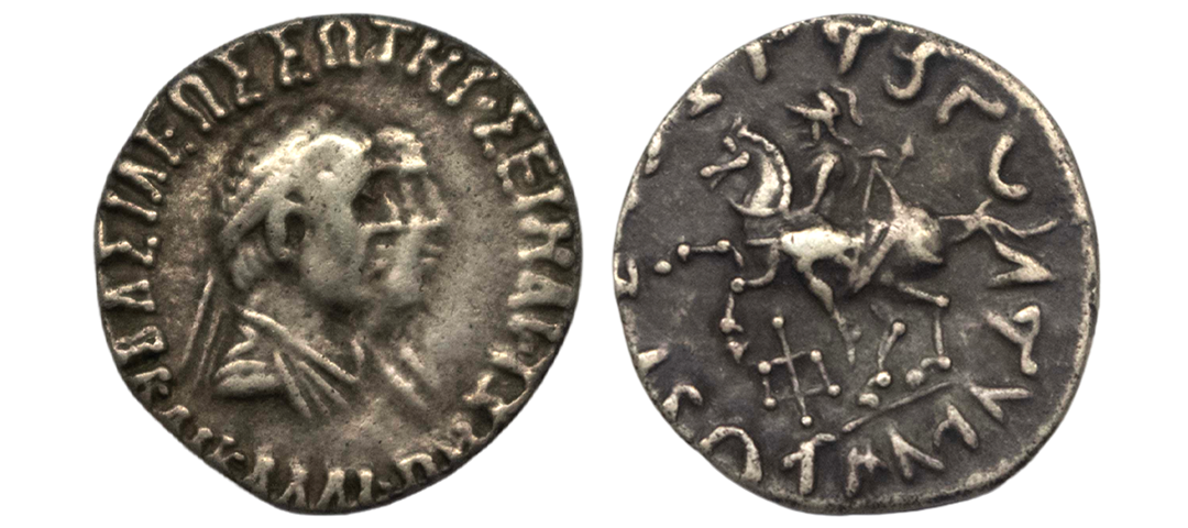 Paratarajas, Koziya (BC 270-230), Copper Drachma, 4.30Grms, OBV: King standing right, holding scepter around traces of Brahmi legend, REV: Swastika turning right, with Kharoshthi legend around. (P. Tandon # JONS 204). Fine.
