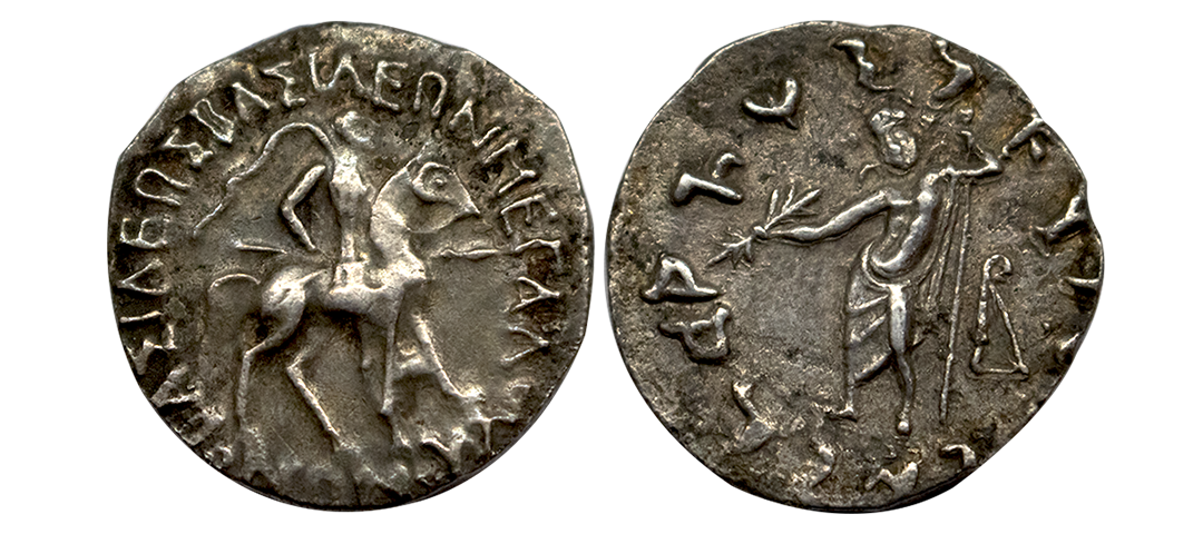 INDO-SCYTHIAN, Vonones with Spalahores Silver tetradrachm, 9.50Grms, Obverse King mounted on horse right, holding spear, Greek legend around: BAΣIΛEωΣ BAΣIΛEΩN MEΓAΛOY / ONΩNOY, Reverse: Zeus standing facing, holding sceptre and thunderbolt, monogram at right, Kharoshthi legend around: maharajabhrata dhramikasa / spalahorasa, Extremely Rare.