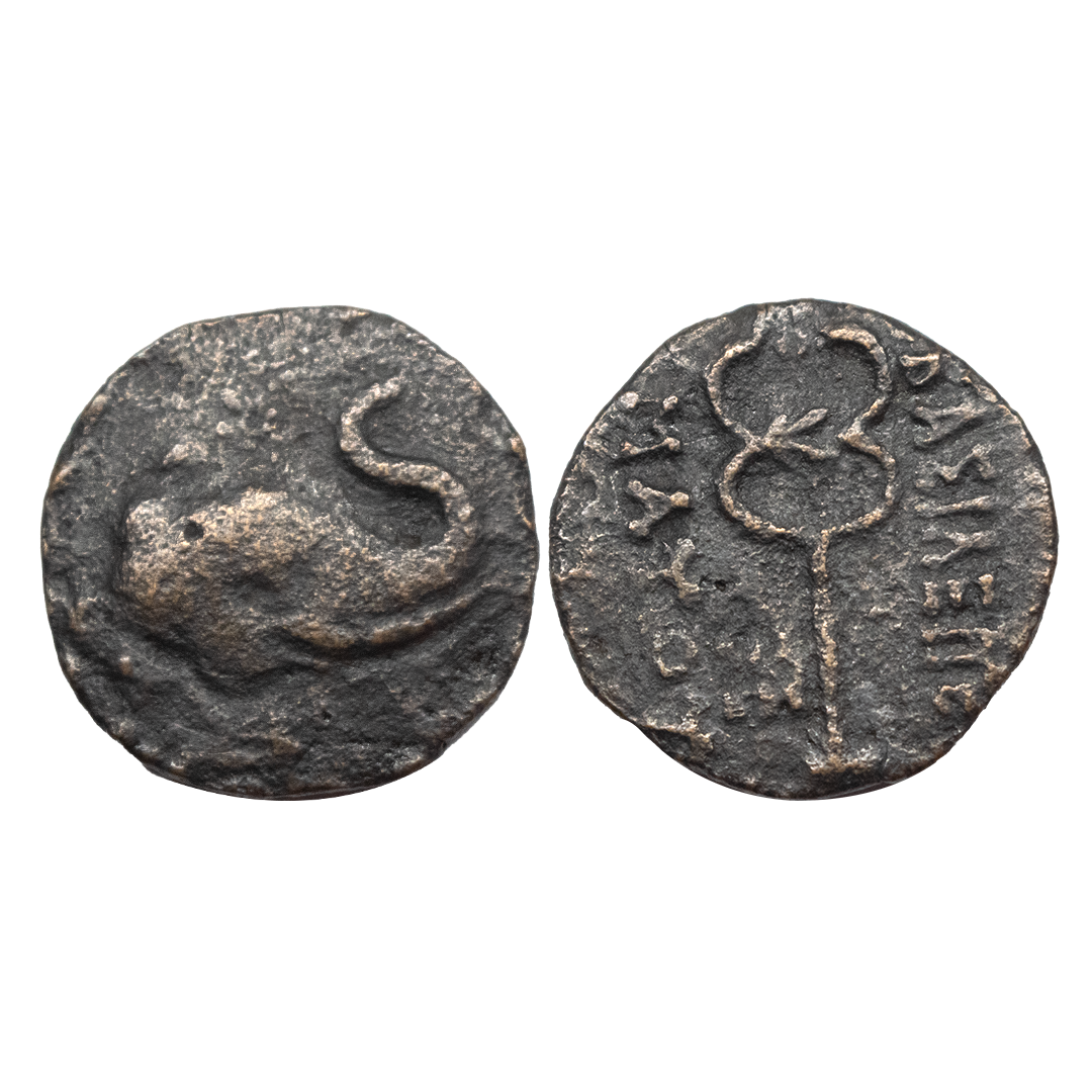 INDO-SCYTHIAN, Vonones with Spalahores Silver tetradrachm, 9.50Grms, Obverse King mounted on horse right, holding spear, Greek legend around: BAΣIΛEωΣ BAΣIΛEΩN MEΓAΛOY / ONΩNOY, Reverse: Zeus standing facing, holding sceptre and thunderbolt, monogram at right, Kharoshthi legend around: maharajabhrata dhramikasa / spalahorasa, Extremely Rare.